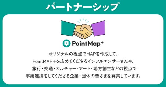 旅行・交通・カルチャー・アート・地域活性化・地方創生・インバウンドなどの視点でPointMap+との事業連携をして頂ける企業・団体の皆さまを募集しております。