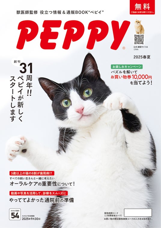 ペット用品通販の株式会社PEPPY(大阪府大阪市、代表取締役社長:平尾泰久)は、犬・猫用品専門の通販情報誌『PEPPY DOGS』『PEPPY CATS』2025年春夏号を3月10日に発刊し、全国約8,000の動物病院で無料配布を開始しました。 本誌は「愛犬・愛猫と飼い主との幸せな毎日を支えたい」という想いのもと、開業獣医師の監修・指導を受け、毎年2回発行。ペットの健康と暮らしに役立つ最新情報や厳選アイテムを紹介しています。