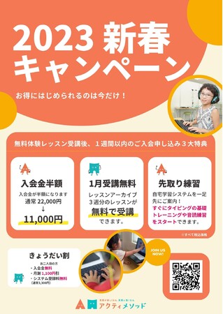 アクティメソッド オンライン校が新規入会者へ向けて新春キャンペーンを実施中!お得にタイピング英語(R)️をはじめられるのは今だけ!