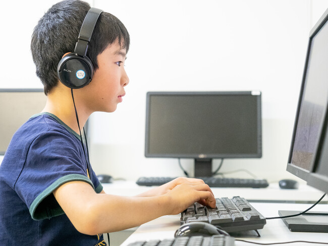 アクティメソッドは一般的な英語学習とは異なり、一切えんぴつを使って書く練習はしません。えんぴつの代わりにパソコンとキーボードを使い練習するので、子どもたちは学習開始と共にまずはタイピングスキルを身につけます。