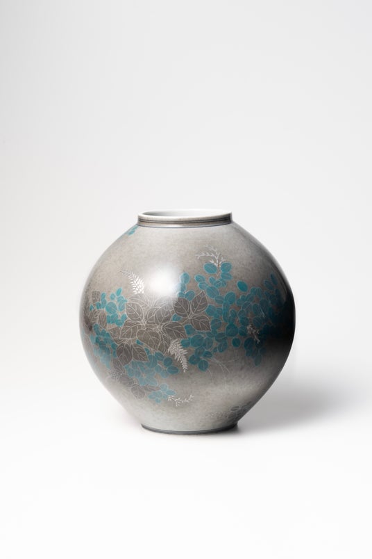 十四代今泉今右衛門|色絵薄墨墨はじき秋草文花瓶Imaizumi Imaemon XIV ,"A flower vase with flower design,overglased enamels,porcelain"