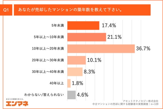 アセットテクノロジー株式会社(本社:大阪府大阪市、代表取締役:宮本泰光、https://assettech.co.jp/service/)は、不動産会社を通じて、所有していたマンションを売却した経験のある人109名を対象に、中古マンションの売却に関する経験者の実態調査を実施しましたので、お知らせいたします。