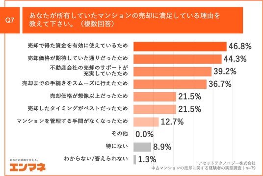 Q7.あなたが所有していたマンションの売却に満足している理由を教えて下さい。(複数回答)