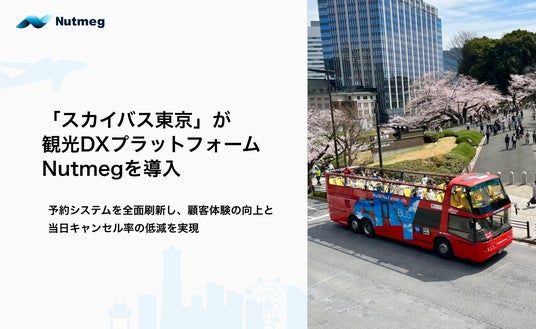 NutmegLabs Japan株式会社(代表取締役:中口 貴志、本社:東京都中央区、以下「当社」)が提供する旅行・レジャーにおける現地体験事業者向けに観光DXプラットフォーム「Nutmeg(ナツメグ)」が、日の丸自動車興業株式会社(代表取締役社長:富田 哲史、本社:東京都文京区)が運行する「スカイバス東京」に導入され、活用が開始されましたことをお知らせいたします。
