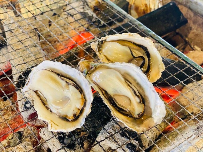 そのほかサザエ、ホタテ、ホッキ貝、ホンビノス貝、エビ、タコ串、イカ串などの浜焼きや牡蠣フライ(3個)、牡蠣ごはん、牡蠣汁、牛串、牛タンつくね、鶏モモ、フランクフルト、フライドポテト、コーンバター(390円~)などのフードやおつまみ、ドリンク(ソフトドリンク250円アルコール500円~)も用意。(※品切れの場合もございます)