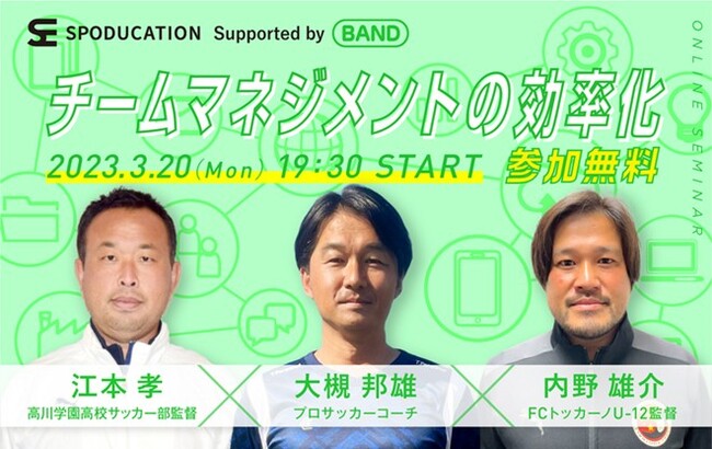 無料グループコミュニケションサービス「BAND」は、「スポーツ×教育」による人材育成を目指すウェブサービス「SPODUCATION(スポデュケーション)」とプロ選手、プロサッカーコーチ、監督・指導者を招待し、チームのコミュニケーションに関するオンラインセミナーを無料で開催することになりましたので、お知らせします。