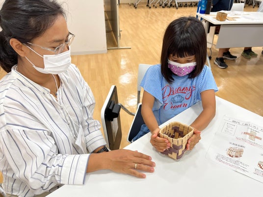 「網代編み」は、なんと縄文時代から続く歴史ある手法。保護者の方と涼しげなかご編みにチャレンジしよう!
