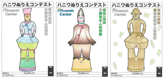 また、小さなお子様には、連日開催中の「ハニワぬりえ」がおすすめです。完成したぬりえは、特別展期間中掲示させていただき、人気投票を行います。上位入賞者にはプレゼントもあるため、奮ってご参加ください。