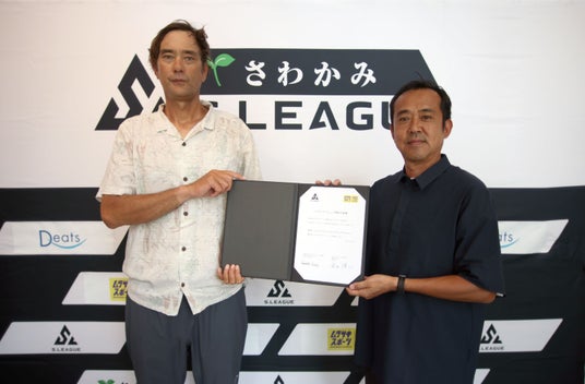 (写真左から、S.LEAGUE サブチェアマン デイヴィッド木下/株式会社ムラサキスポーツ 取締役社長 金山洋一氏)
