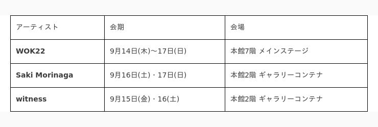 Saki Morinaga / Seiji Matsumoto / sota / WOK22 / Wataru Komachi / witness / Andy Warhol and more