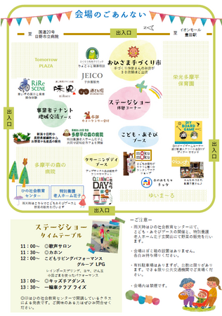 ※雨天の場合は、場所を「ひの社会教育センター」及び「特別養護老人ホーム花子」とし、