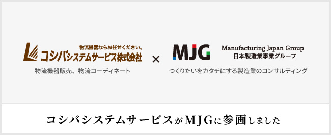 コシバシステムサービス株式会社(本社:東京都、代表取締役社長:伊部大輔、以下「コシバシステムサービス」)は日本全国の製造業を中心としたグループ企業であるMJG株式会社(本社:東京都港区、代表取締役会長:田邑元基、以下「MJG」)に参画したことをお知らせします。