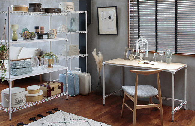 ホームエレクターの「業務用のプロから培ったノウハウを家庭用シェルフへ」というコンセプト、日本に合わせたセンチモジュールのサイズ展開はそのままに、2023年1月からは家庭用としてだけではなく、人の営みが生まれる、あらゆる空間で愛されるシェルフに生まれ変わりました。