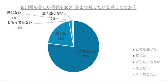 - 97%が「白川郷の美しい景観を100年先まで残したい」と回答。