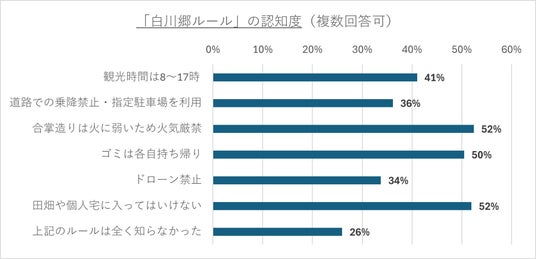 - 白川郷ルールの認知度は5割程度。4人に1人は「全く知らない」と回答