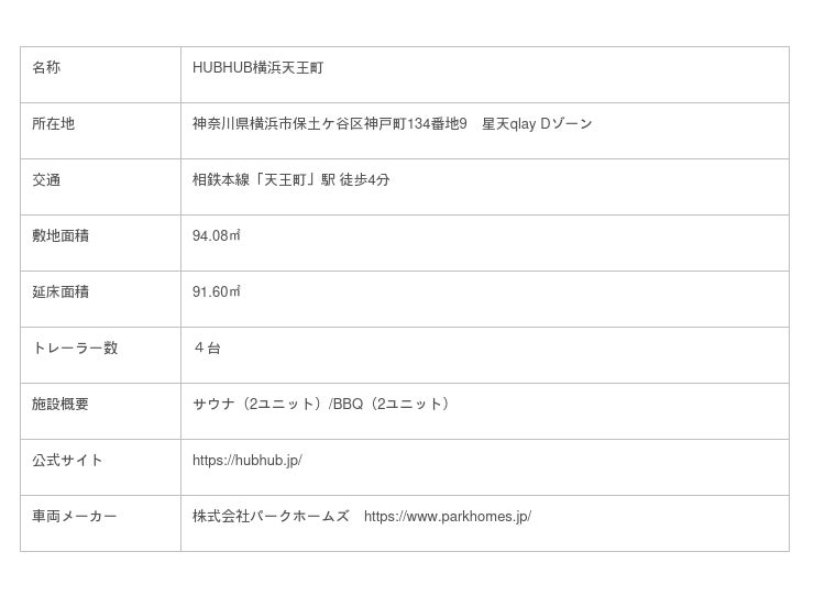 今回のHUBHUBの舞台は神奈川県横浜市の相鉄本線「天王町」駅 徒歩4分の鉄道高架下。相鉄線高架下施設「星天qlay」に誕生し、サウナとBBQができるユニットで構成されています。