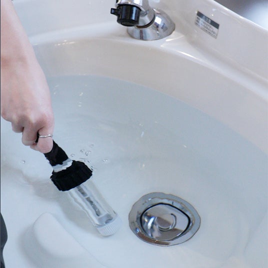 1.ストレーナーでシャンプーボウルからお湯を吸引します。