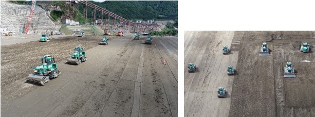 小石原川ダム本体建設工事で次世代の建設生産システム「A⁴CSEL(R)」による本格盛立を実施