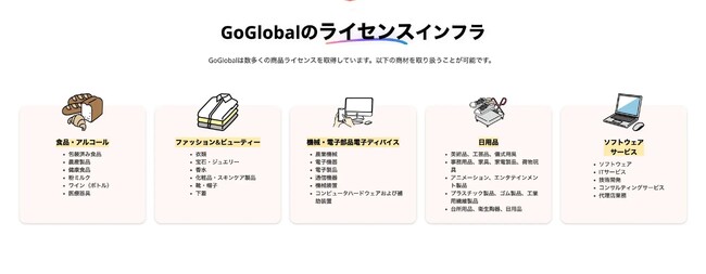 GoGlobalなら既に数多くの商品ライセンスを取得していることから、以下の商材を取り扱うことが可能です。