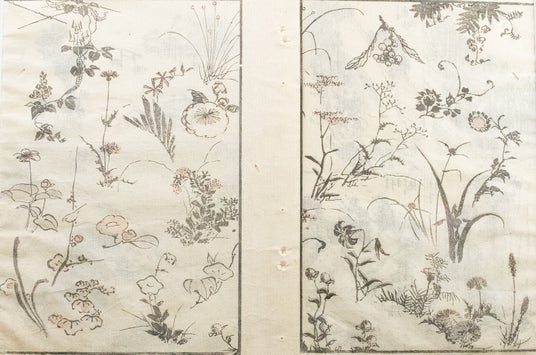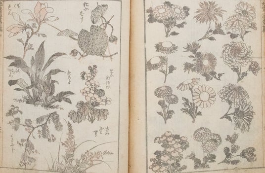 『北斎漫画』二編「菊・木蓮・立葵・馬蘭・草藤」