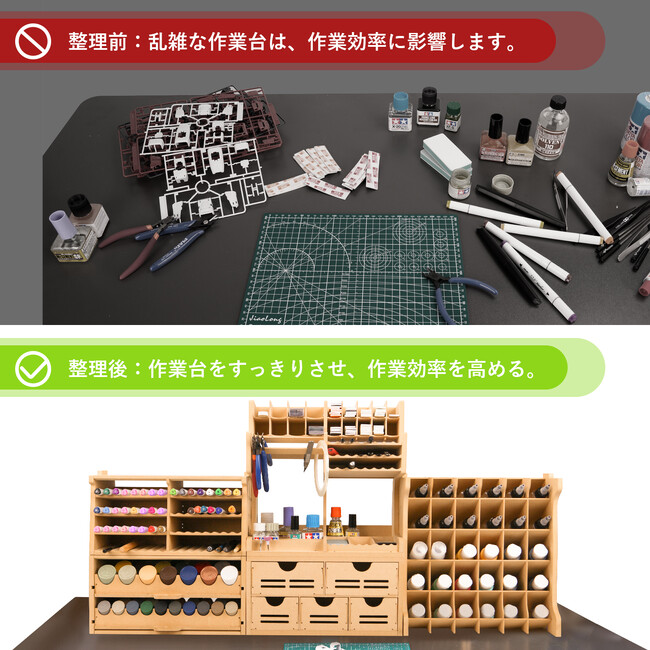 Bucassoは、工具収納と塗料収納を融合させた収納ラックの組み合わせを新発売します。新しい工具収納ラックは、模型製作道具や塗料の収納問題を解決できます。さらに、組み立て後の占有面積は非常に小さく、多数の工具を収容できます。