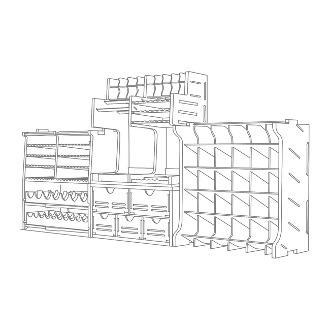 統合型モデルツール収納ラックと引き出し式部品収納ラックを組み合わせることで、最小限のスペースでより多くの工具を収納できます。最も費用対効果が高い収納ラックです。