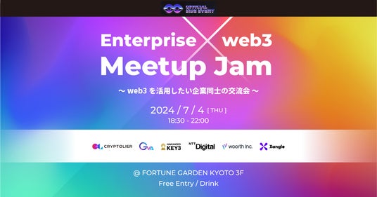 クリプトリエはweb3領域の認知拡大や業界の発展を目指し、web3のビジネス活用を考えている企業やweb3領域の専門家の情報交換を目的とするオフィシャルサイドイベント『Enterprise × web3 Meetup Jam ~web3を活用したい企業同士の交流会~』を7月4日(木)に開催いたします。