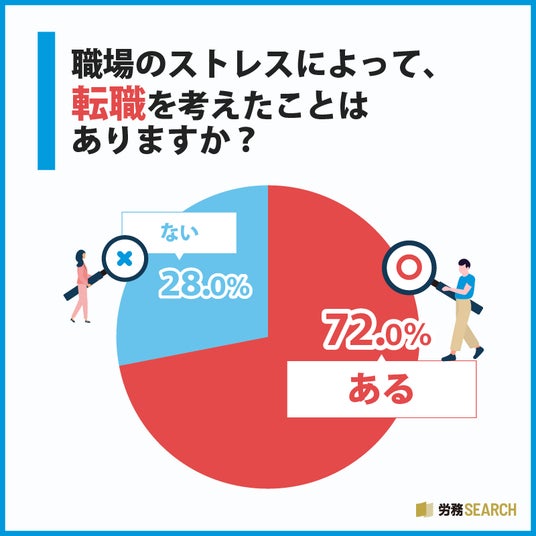 ●職場におけるストレスは転職につながる可能性が高い さらに、職場のストレスによって転職を考えたことがあるか質問してみたところ、7割以上の方が転職を検討したことがあると回答しました。