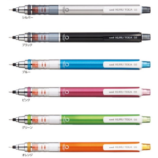 クルトガは名入れ範囲が広く、クルっと回ってトガった芯をキープし、芯の外側がやわらかいため芯先の形状がいつもトガった状態で細くクッキリと書き続けられる芯径0.5mmのシャープペンシルです。シャープペンシルランキングにも入る、学生に人気の商品です。