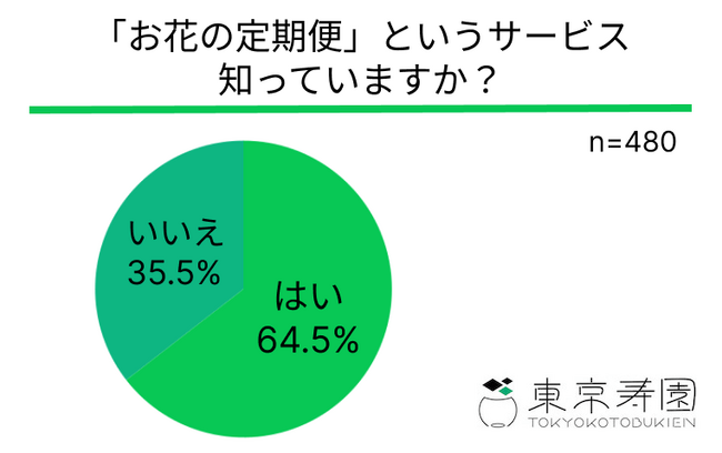 「お花の定期便」を認知していた方は64.5%もいた!