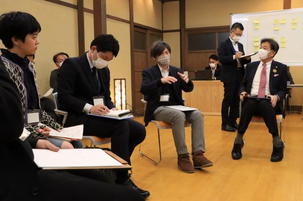 それぞれ初回には、状況・課題の洗い出しや、政策立案に向けたポイントの整理などを行い、2回目には、それぞれが考えた政策について、市長も交えて意見を交換します。