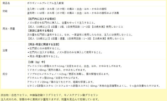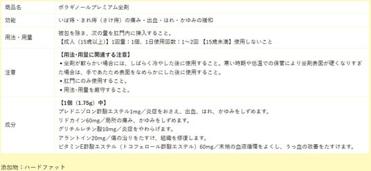 ※1ボラギノールプレミアム坐剤のグリチルレチン酸を除く