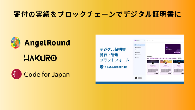 この度、エンジェルラウンド株式会社とHAKUROの素晴らしい取り組みに参加できることを大変光栄に思います。本プロジェクトがもたらすAIとアートの融合が創り出す新しい価値観と、コード・フォー・ジャパンへの寄付という取り組みは、テクノロジーと社会貢献の融合を実現する新しい挑戦であると感じています。そして私たちVESSもまた、分散型アイデンティティやブロックチェーンといったテクノロジーを通じて、誰もが自身の社会貢献やこれまでの経験をデジタル上で証明できる世界を目指し、挑戦を続けてまいります。