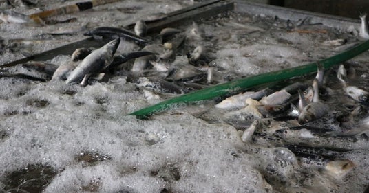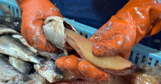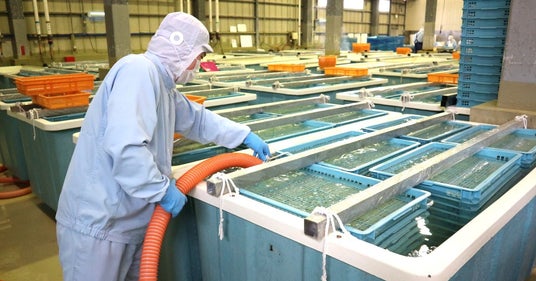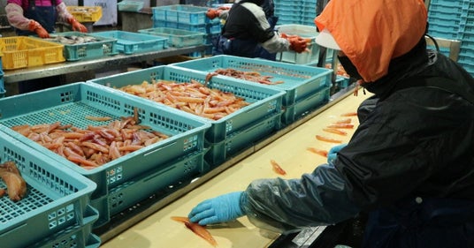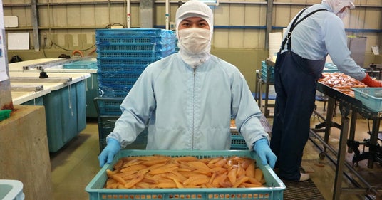 松井:卵を取り出したあとは下処理工場へと運ばれていき、タンク内で3日間かけて血抜きを行います。その後、重量の選別機にかけて1本1本計量していき、それぞれ容器に入れて冷蔵庫に保管という流れになります。腹出しからここまでで、約1週間くらいかかる工程になりますが、まだ終わりではありません。