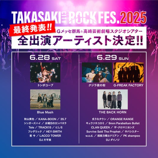 【TAKASAKI CITY ROCK FES.2025】 出演アーティスト発表最終発表