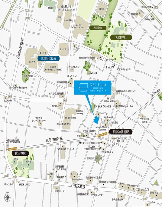 世田谷の品格ある情景を映す若林エリア。緑豊かな住環境に、世田谷区役所を間近にする都市機能があります。