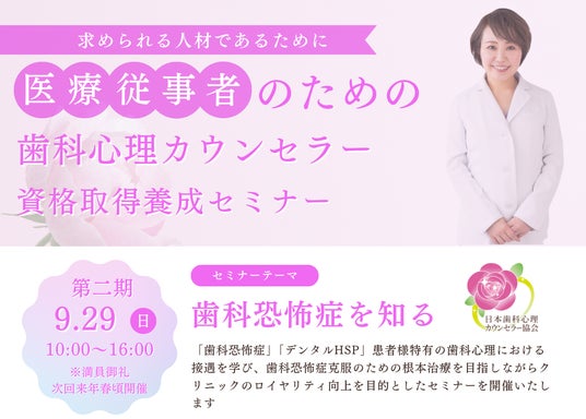 日本歯科心理カウンセラー協会は、2024年9月29日(日)および11月24日(日)に第二期となる、歯科心理カウンセラー資格取得養成セミナーを開催することをお知らせします。本セミナーは、「歯科恐怖症」「デンタルHSP」患者様特有の歯科心理における接遇を学び、歯科恐怖症克服のための根本治療を目指しながらクリニックのロイヤリティを向上させることを目的としています。