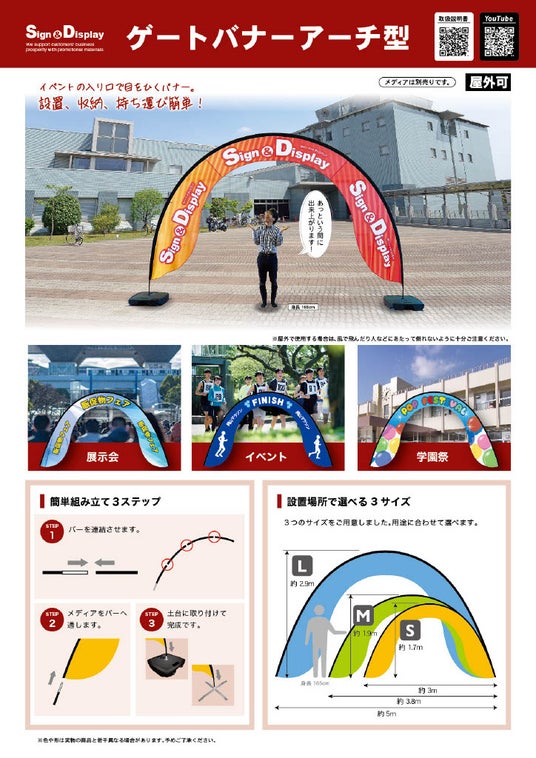 イベントの入り口で目を引くバナー。設置、収納、持ち運び簡単!