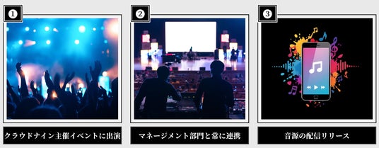 定期的に行われるイベントへの出演や、マネージメント部門と連携した現場最前線のフィードバック、音源の配信リリースなど、クラウドナインならではのアセットやリソースを提供致します。