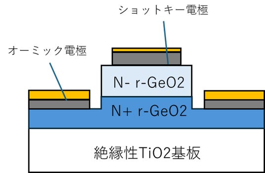 図1 : 今回試作したr-GeO2単結晶膜を用いた疑似縦型のSBDの構造模式図