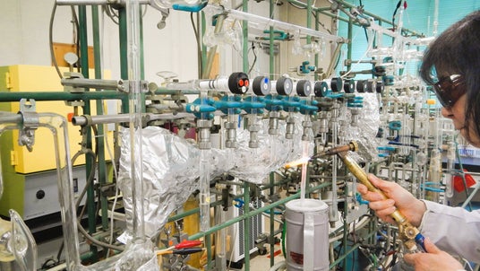 安定同位体分析を行う「真空ライン」での作業の様子