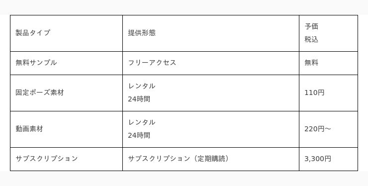提供形態はお求めやすい価格の単品レンタル形態と、たっぷりお使いいただける全素材アクセス可能なサブスクリプション形態を予定しています。