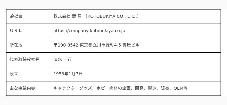 「感動と驚きを提供する」という企業理念のもと、これまでフィギュアやプラモデル、キャラクターグッズや雑貨等、多種多様な製品を世に送り出しています。