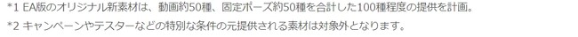 「ジザイテン」EA版では、CBT版の10素材に加え、新規撮りおろし素材約100種(*1)を追加してローンチ予定。さらに、年間を通して順次約200素材を追加していく計画です。