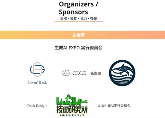 Givin' Back株式会社(本社:東京都港区、代表:木下直美)開催の「生成AI EXPO in 東海」の協賛・協力・後援団体が決定しました。