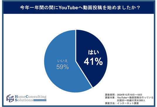 ・「41%」の方が今年からYouTubeへの動画投稿を始めたと回答