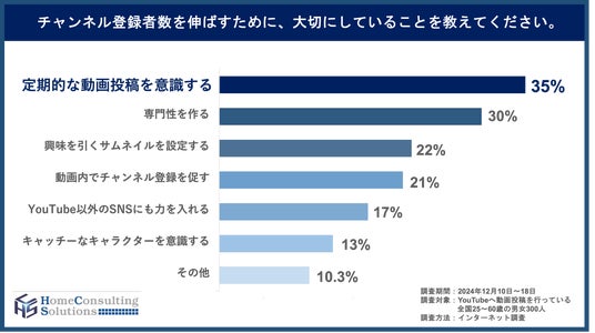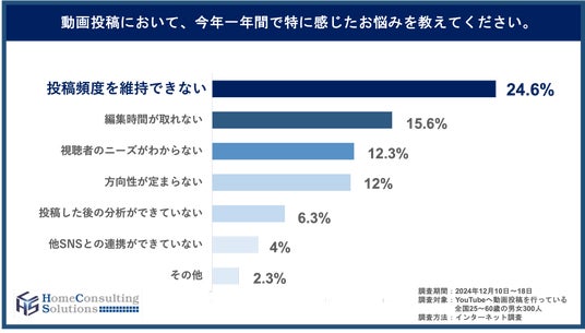 不動産コンサルティングのホームコンサルティングソリューションズ株式会社(愛知県名古屋市、代表・小林大祐)は、YouTubeへ動画投稿を行っている全国の男女25~60歳の300名を対象に、今年一年間の動画投稿に関する実態調査を実施しました。