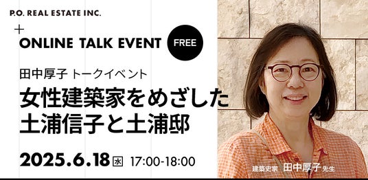 株式会社ピーオーリアルエステート(本社:東京都品川区 代表取締役社長:福田泰博)は、昨秋より一般公開を実施、好評を得ている東京都指定有形文化財(建造物)の土浦亀城邸に関するトークイベントを6月18日(水)に開催、ライブ配信いたします。