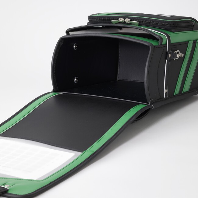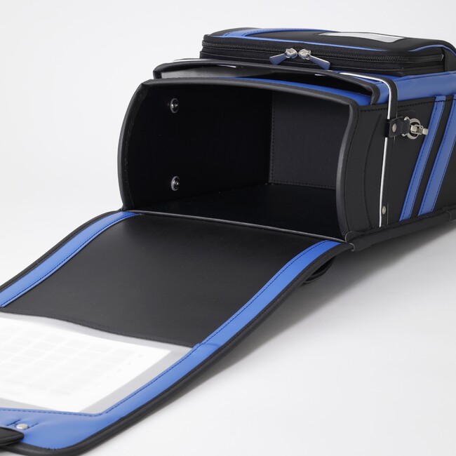 人工皮革の表面加工を施しキズがつきにくい耐久性重視のランドセルです。ブラックをベースに鮮やかなコンビカラーでスポーティなイメージのデザインです。