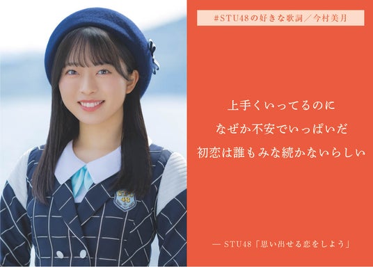 STU48 の 1st アルバムが 6 月 5 日に発売決定しました!8 年目にして初めてのアルバムというこ とで、STU48 の神曲達をさらに世の中の方々に知っていただけるいいチャンスになるんじゃないか なと思っています。このアルバムをきっかけにたくさんの新しいファンの方も増えたらいいなと思いま すし、今まで応援してくださっているファンの方にももっともっと STU48 を好きになってもらえたら 嬉しいです。メンバー一同、全員で一丸となって瀬戸内からたくさん盛り上げていけるように頑張りた いと思います!楽しみにしていてください!!